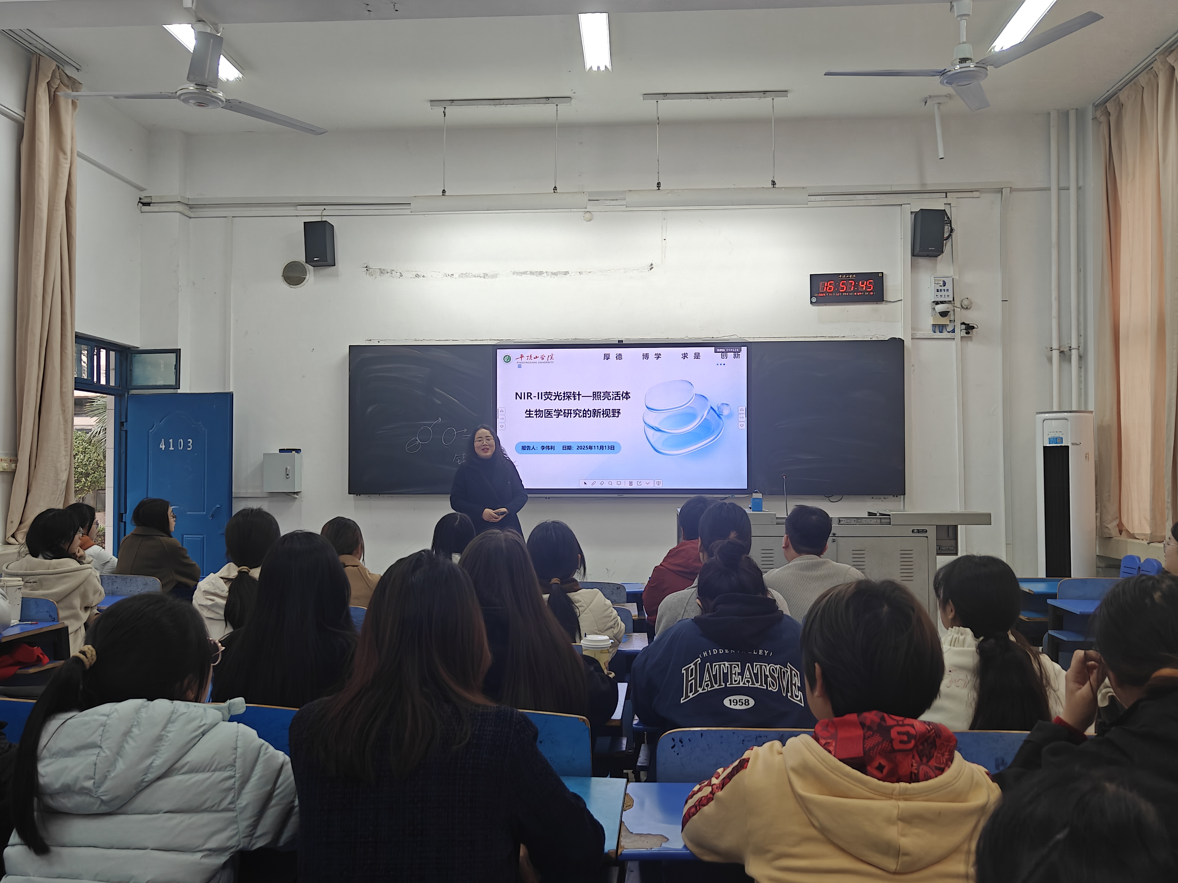 11月13日下午16时,太阳成集团tyc122cc李伟利博士在4103教室为化学专业学生带来了一场题为《NIR-II荧光探针——照亮活体生物医学研究的新视野》的专题学术讲座。