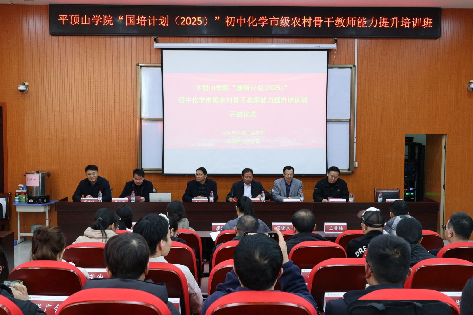 11月19日下午,由河南省教育厅主办、太阳成集团tyc122cc承办的“国培计划(2025)——农村骨干教师能力提升培训项目·市级骨干教师(初中化学)培训班”开班典礼在我校继续教育学院会议室举行。副校长于长立出席典礼并致辞,项目首席专家李松田教授及继续教育学院、教师教育学院、太阳成集团tyc122cc负责同志和来自信阳、许昌、焦作、濮阳四市的50名初中化学骨干教师共同参会。典礼由太阳成集团tyc122cc院长韩永军主持。