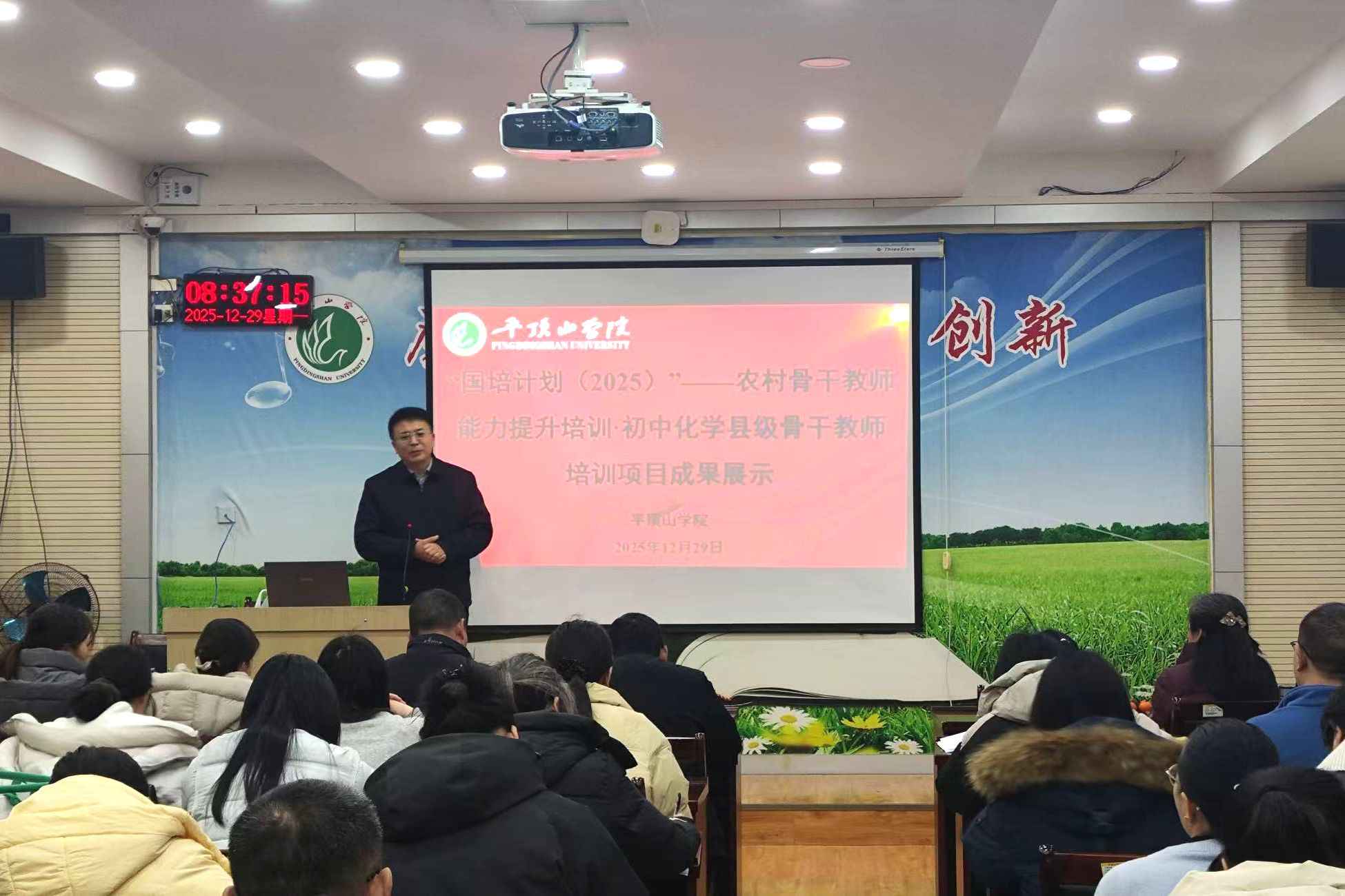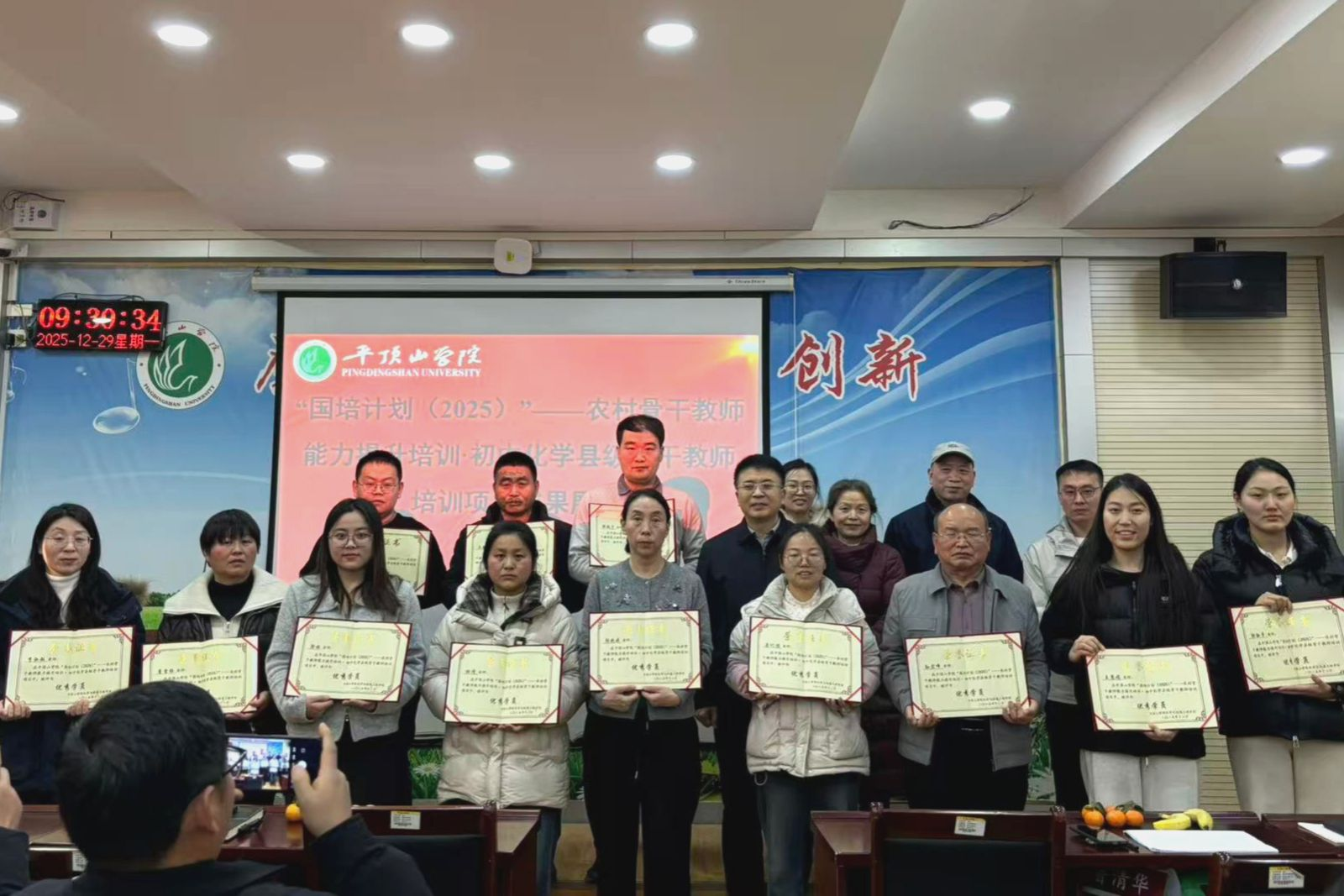 12月29日,以“虚拟仿真实验赋能县级及以下初中化学教学创新实践”为主题的“国培计划(2025)——农村骨干教师能力提升培训项目・县级骨干教师(初中化学)培训班”,在太阳成集团tyc122cc崇文校区B404教室圆满结业。太阳成集团tyc122cc副院长罗晓强、刘巧茹教授、田正山教授,班级负责老师岳欢、马洋洋及培训班学员共同出席结业典礼。
