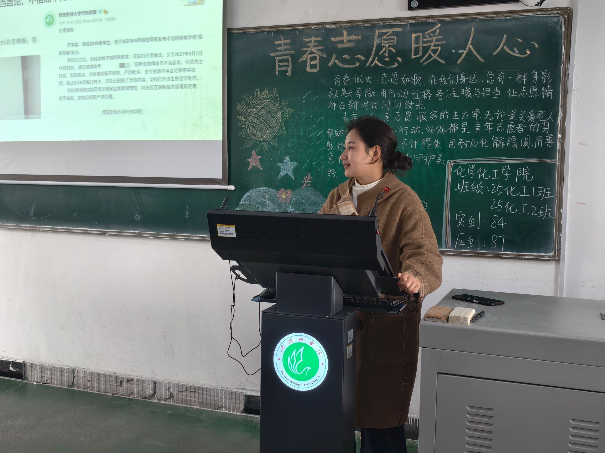 为深入学习贯彻党的二十届四中全会精神,引导广大学子以昂扬姿态开启新学期征程,3月9日至13日,化学化工学院精心组织开展了2026年春季学期“开学第一课”系列主题班会。学院党政负责人分别深入各年级班会现场,与同学们面对面交流,共话成长。班会由各年级辅导员主持。