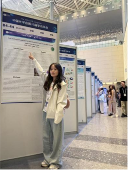 陈樱歌同学在做了主题为“Facile Synthesis of Large-Sized Cu-In-Se Nanocrystals with Tunable Near-Infrared Region II (NIR-II) Emission”的墙报展示,分享交流了课题组在近红外量子点研究领域取得的最新进展和成果。