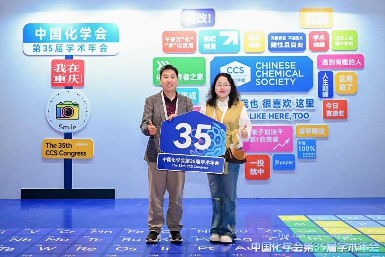 2026年4月11日至14日,中国化学会第35届学术年会在重庆科学会堂隆重举行。本届年会以“赋能化学,新质未来”为主题,共设72个学术分会及18个特色论坛,同时设立新技术、新产品与新仪器大型成果展览,共有包括两位诺贝尔化学奖得主、百余位两院院士在内的1.6万余名化学科技工作者和学生参加年会并进行交流。李伟利老师、盛鹏涛老师携课题组硕士研究生陈樱歌参加了本次年会。